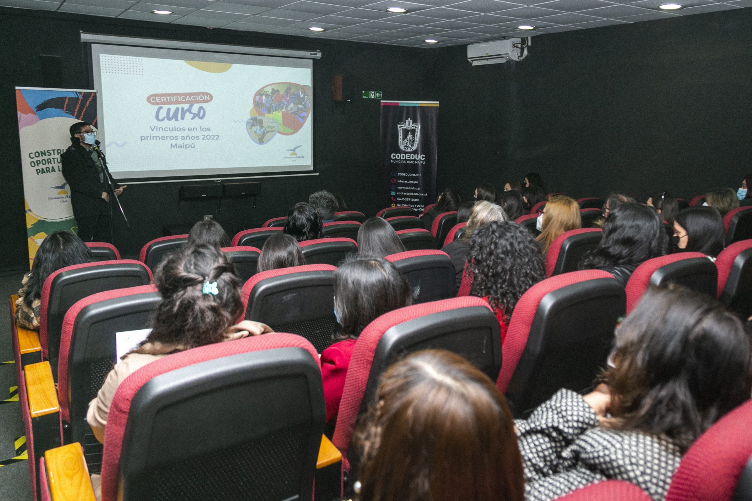 En la mañana del lunes 12 de septiembre, en las dependencias de la Cineteca de Maipú, la Fundación Arcor Chile y la Corporación de Educación (CODEDUC) de la Municipalidad de Maipú efectuaron la ceremonia de certificación a 44 educadoras y técnicas en educación parvularia que completaron el curso “Vínculos en los primeros años”.
